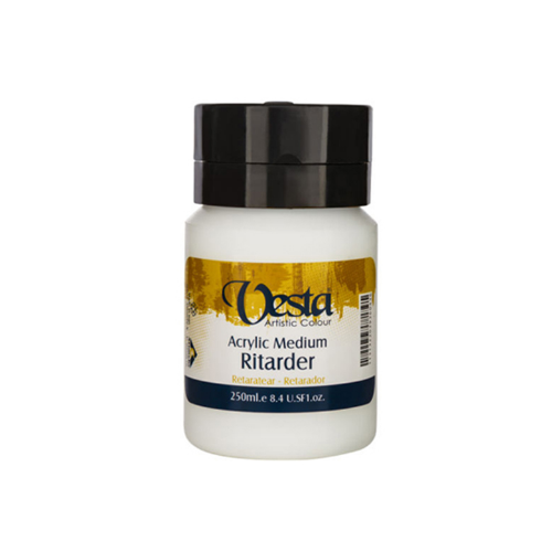 از آنجایی که رنگ های اکریلیک سریع خشک می شوند زمان زیادی برای ترکیب و چرخش رنگ ها روی سطح کار وجود ندارد. برای اینکه این مشکل حل شود بسیاری از هنرمندان از ریتاردر وستا که مایعی نیمه شفاف است استفاده می کنند. این ریتاردر زمان خشک شدن رنگ اکریلیک را افزایش می دهد و به آرامی درخشندگی رنگ را بیشتر می کند و لایه های رنگ را به صورت مشخص تری نشان می دهد.